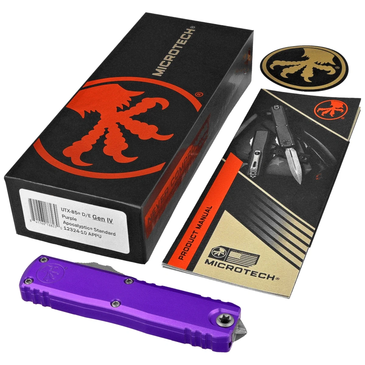 - UTX-85 Gen IV D/E Purple Aluminum, Apocalyptic is a compact OTF automatic knife from the UTX-85 series. Designed for EDC applications, it retains all the advantages of larger models. Operating in D/A mode, it features a fast blade extension mechanism.