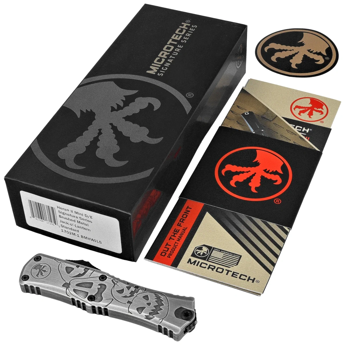 Microtech Hera II Mini Signature D/E OTF Knife Jack-O-Lantern Aluminum, Black Apocalyptic M390MK by Tony Marfione (1702M-1 BMHWJLS)