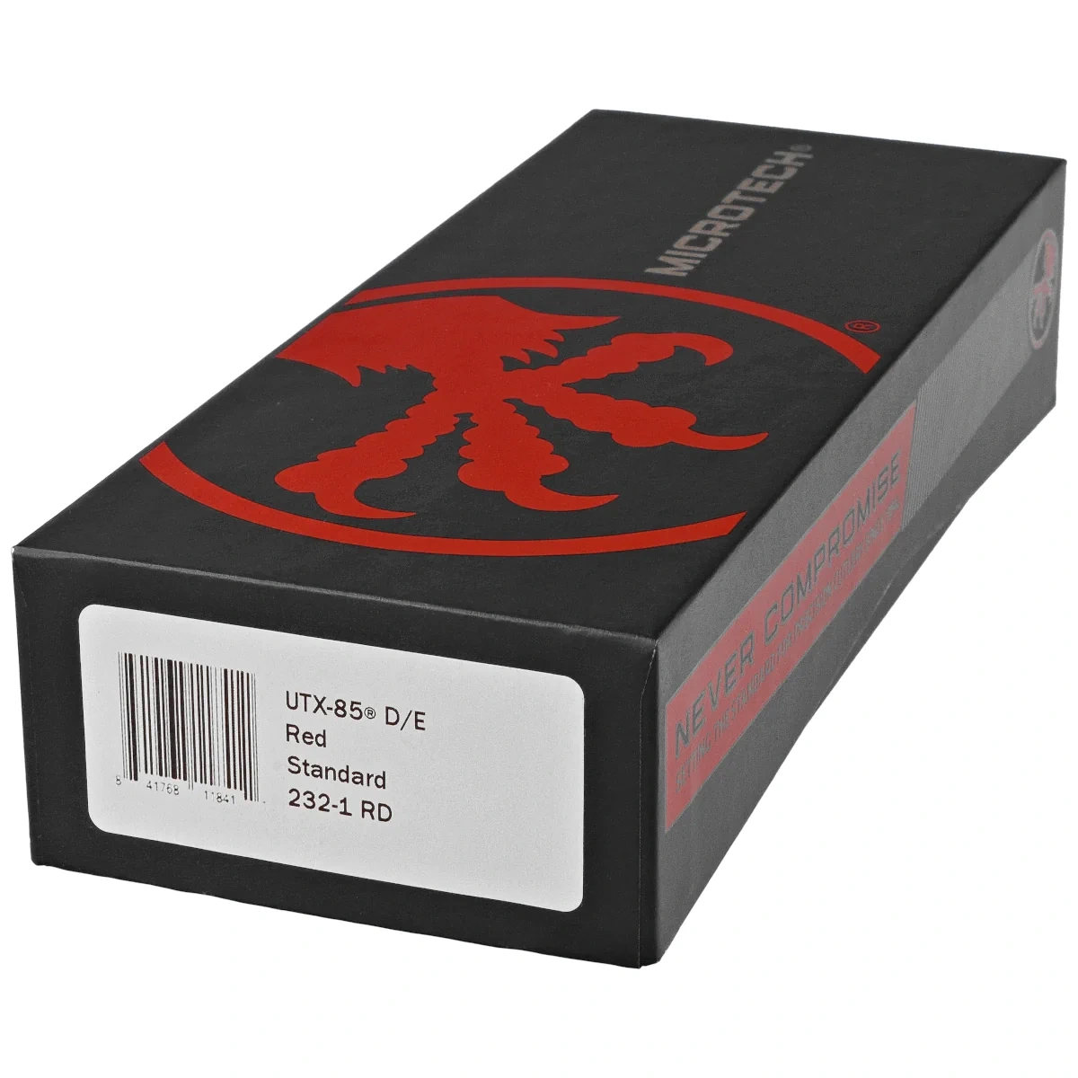 - UTX-85 D/E Red Aluminum, Black is a compact OTF automatic knife from the UTX-85 series. Designed for EDC applications, it retains all the advantages of larger models. Operating in D/A mode, it features a fast blade extension mechanism.