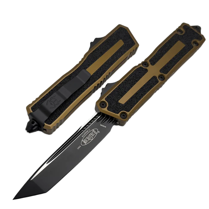 Microtech Scarab II Gen III T/E OTF Knife Tan Aluminum, Black M390MK by Tony Marfione (1279-1TA)