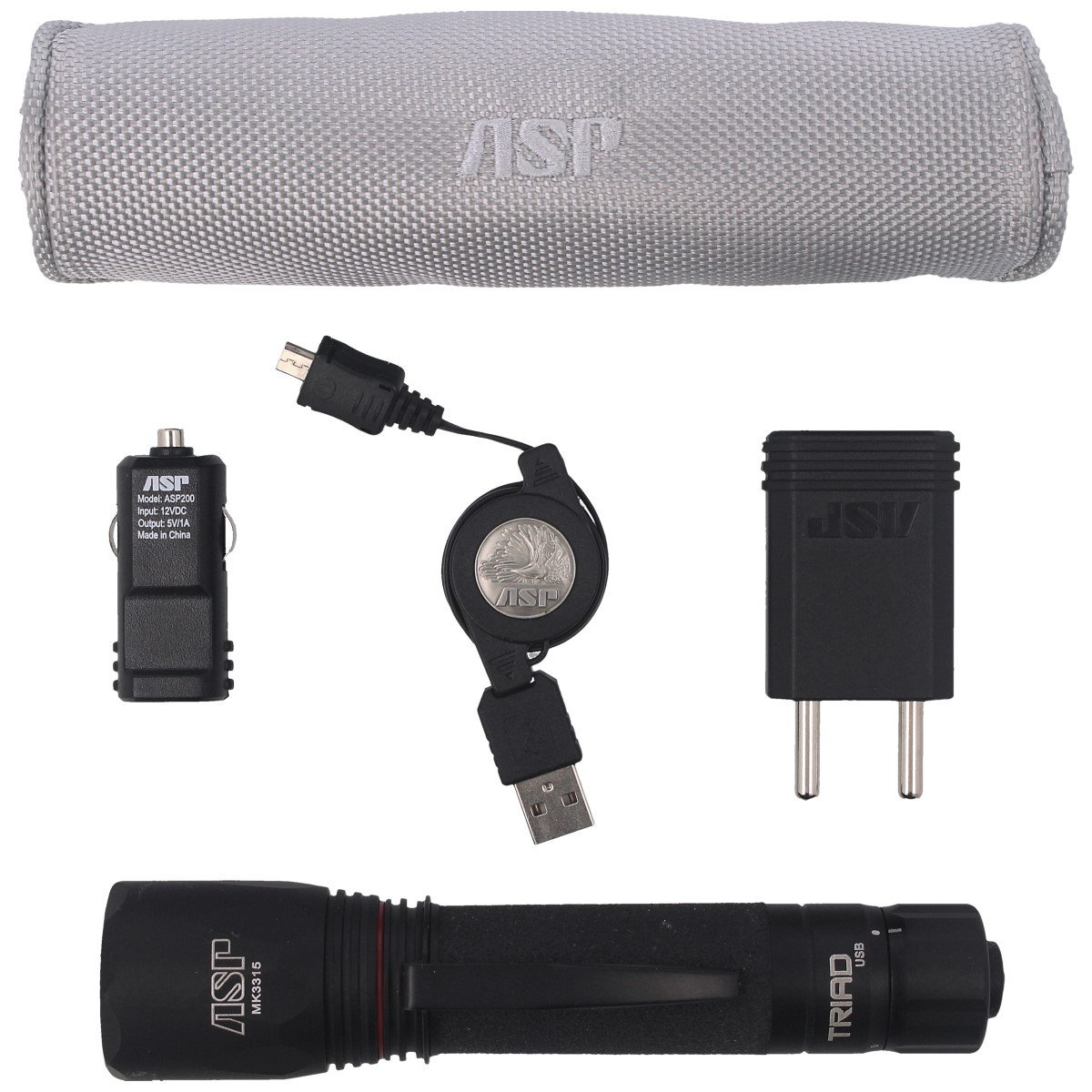 Triad USB (EU), profesjonalna latarka taktyczna amerykańskiej firmy ASP z funkcją ładowania za pomocą wbudowanego portu USB. Wyposażona w źródło światła, diodę Cree XPG R5 LED o mocy 300 lumenów (wg standardu ANSI FL-1). Diodę cechuje wysoka wydajność świetlna oraz natychmiastowe rozświecenie do maksymalnej wartości.