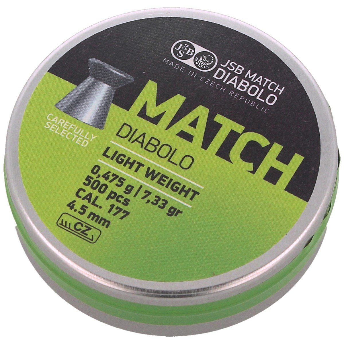 - Match Light Weight 0.475 g lekki, pistoletowy śrut tarczowy z płaskim czołem w kal. 4.52 mm. Najlepsza amunicja wyczynowa do zawodów ISSF. Idealnie płaska głowica umożliwia uzyskanie doskonale widocznych, gładkich, nieposzarpanych przestrzelin. Op 500 szt