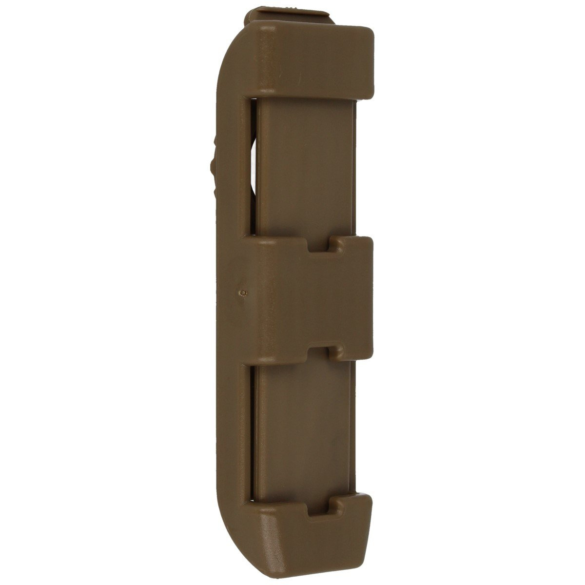 UBC-04-1 KH Swiveling Single-row MOLLE Clip w kolorze khaki. Opcjonalne mocowanie transportowe do mocowania pod taśmy w standardzie MOLLE MIL STD. Pojedynczy klips przeznaczony do przenoszenia nylonowych lub plastykowych ładownic, uchwytów, kabur czeskiej firmy ESP na magazynki, pałki teleskopowe, paralizatory, latarki, gaz pieprzowy.
