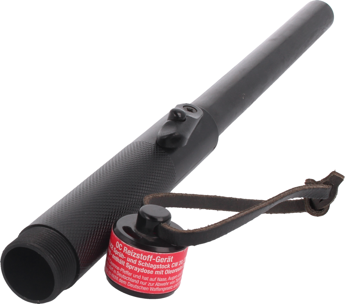 Ważne! Pałka zawiera środek drażniący OC (Oleoresin Capsicum czyli kapsaicyę alkalidową). Wywołuje silną reakcją alergopodobną: łzawienie, zaczerwienienie skóry, a także silne pieczenie śluzówek. W razie kontaktu z gazem oczy oraz twarz spłukać zimną wodą. Nie rozcierać. Symptomy znikną po ok. 45 min.