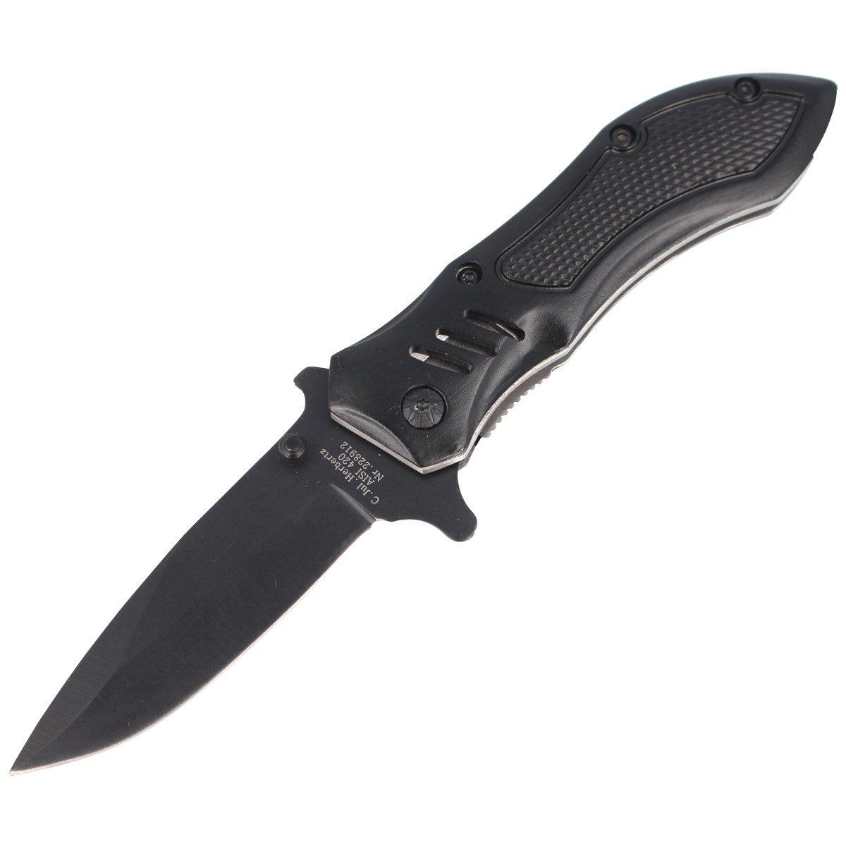 • Duży, solidny i tani nóż półautomatyczny niemieckiej marki Herbertz Solingen. Wyposażony mechanizmem sprężynowy pozwalający na szybkie rozłożenie ostrza na dwa sposoby za pomocą Thumb Stud lub płetwy Flippera. Bestseller!