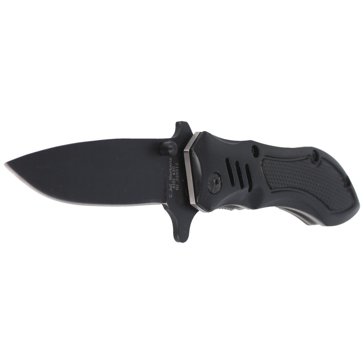 Duży, solidny i tani nóż półautomatyczny niemieckiej marki Herbertz Solingen. Wyposażony mechanizmem sprężynowy pozwalający na szybkie rozłożenie ostrza na dwa sposoby za pomocą Thumb Stud lub płetwy Flippera.