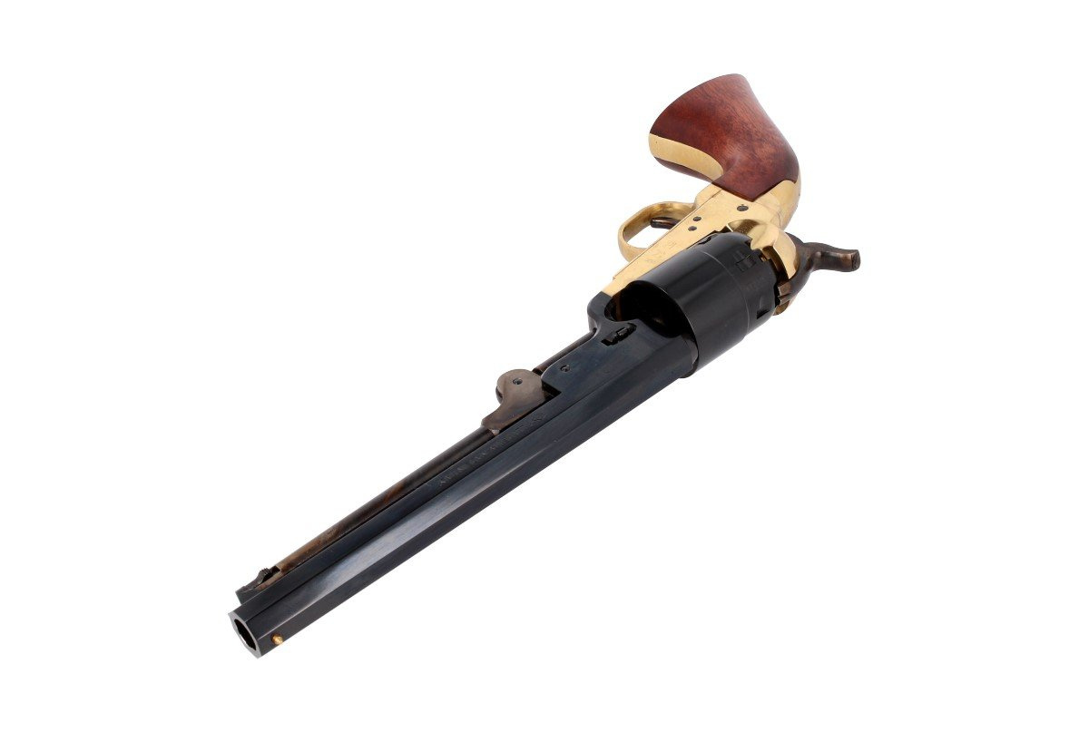 • 1851 REB Nord Navy .44, rewolwer czarnoprochowy Colta w kal. .44. Broń armii Konfederacji podczas wojny secesyjnej. Ładowany odprzodowo z ramą otwartą mosiężną. Osłona spustu, okucia chwytu z polerowanego mosiądzu. Oktagonalna lufa 7.37". Okładziny orzech