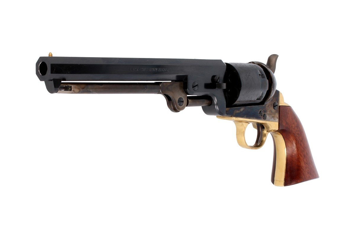 1851 Colt Navy Yank .36, symbol Dzikiego Zachodu w wersji z grawerowanym bębnem w kalibrze .36. Najbardziej lubiany przez Samuela Colta ładowany odprzodowo kapiszonowy rewolwer czarnoprochowy. Cylinder bębna zdobi wygrawerowana scena zwycięstwa II Texas Navy w bitwie morskiej pod Campeche w roku 1843.
