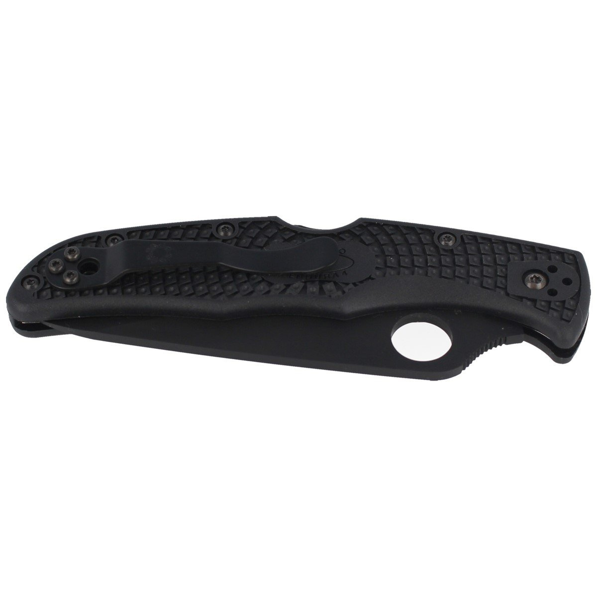 Głownia - o profilu Clip Point z dobrze trzymającej ostrość japońskiej stali nierdzewnej VG-10, hartowanej w przedziale 59-61 HRC. Pokryta matową, nierefleksyjną powłoką TICN (Non-Reflective Titanium Carbonitride) w kolorze czarnym. Powiększone 14 mm okrągłe wycięcie SpyderHole do otwarcia klingi za pomocą kciuka. Karbowany fragment grzbietu głowni, rampa (jimping / crosshatching) ustawia kciuk, daje solidne podparcie oraz ułatwia operowanie folderem. Blokada głowni Back-Lock z dodatkowym wycięciem Boye Detent, zapobiegającym przed przypadkowym zwolnieniem blokady przy mocnym uchwyceniu noża.
