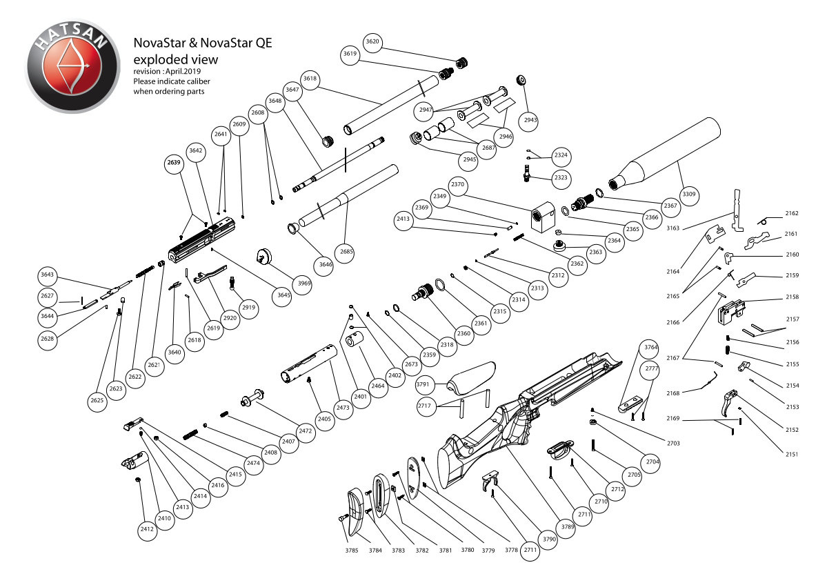 Ważne! Przy zamawianiu części zamiennej prosimy o podanie nazwy wiatrówki, numeru seryjnego oraz kalibru.