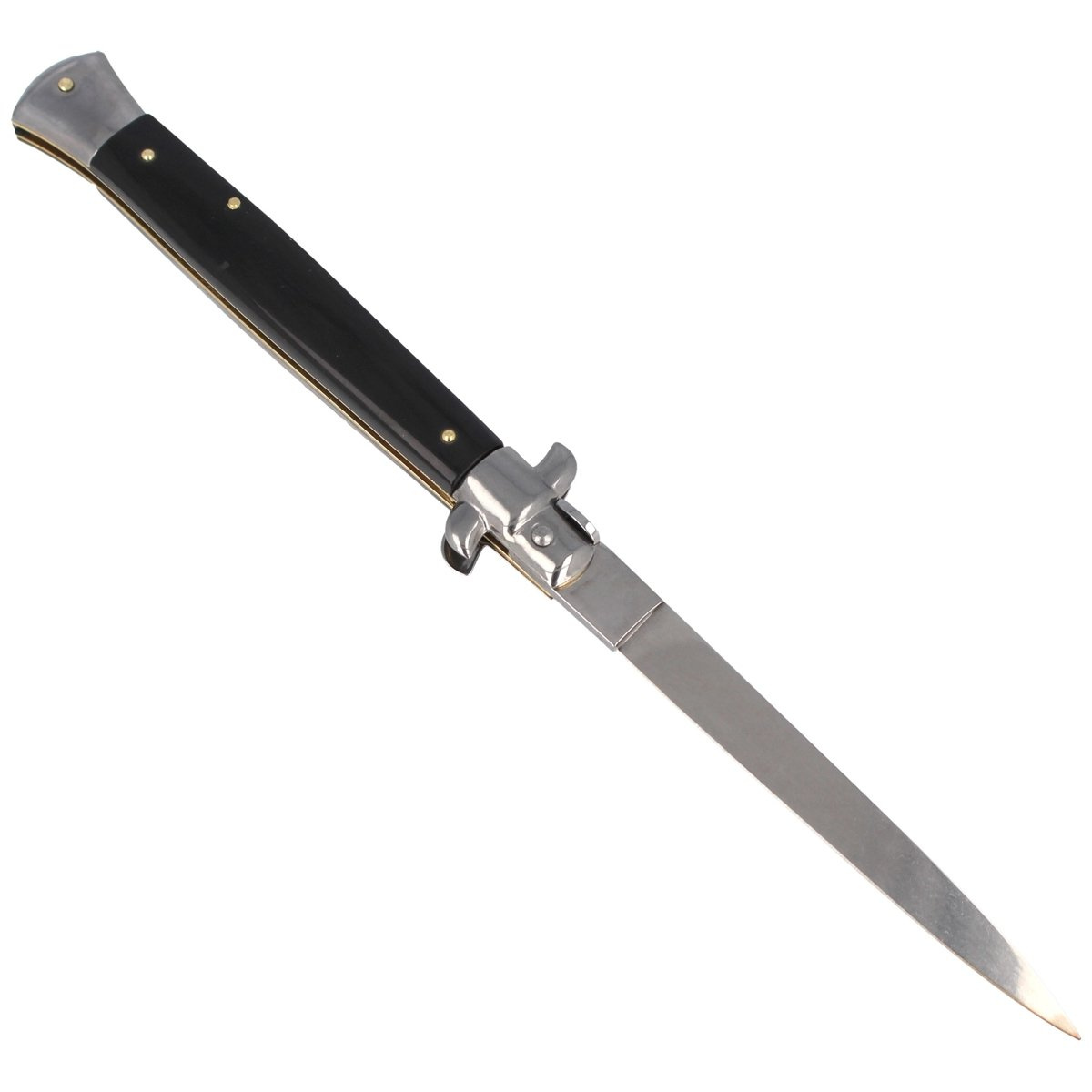 - Frank Beltrame Stiletto Dagger Bull Horn 28cm. Tradycyjny włoski nóż sprężynowy ręcznie składany z okładzinami z rogu bawołu. Folder podczas otwierania klingi (setnych sekundy) wydaję charakterystyczny klik odróżniający go od pozostałych noży sprężynowych