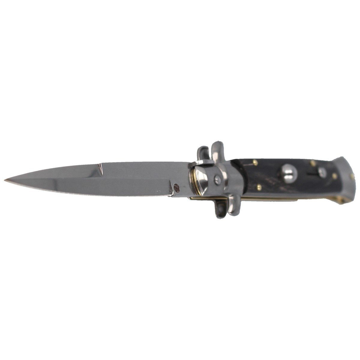 - Frank Beltrame Stiletto Bayonet Bull Horn 23cm. Tradycyjny ręcznie składany włoski nóż sprężynowy - okładziny róg bawoła. Kultowy folder podczas otwierania klingi setnych sekundy wydaje charakterystyczny klik odróżniający go od innych noży sprężynowych...