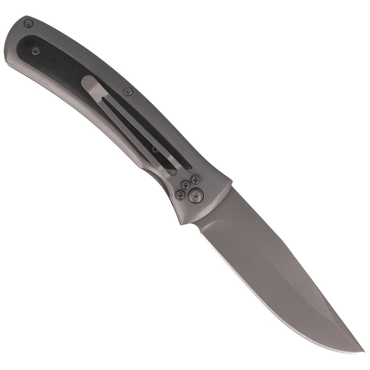 Rękojeść - wykonana ze stali nierdzewnej pokrytej powłoką na bazie tytanu, z wkładkami (inlays) z drewna sandałowego. Fazowane krawędzie okładek eliminują ostre ranty a wkładki poprawiają pewność uchwytu. Otwarta konstrukcja tzw. open-backed redukuję wagę oraz ułatwia czyszczenie. Jednopozycyjny, prawostronny klips umożliwia przenoszenie noża w pozycji tip-down, czubkiem ostrza do dołu.