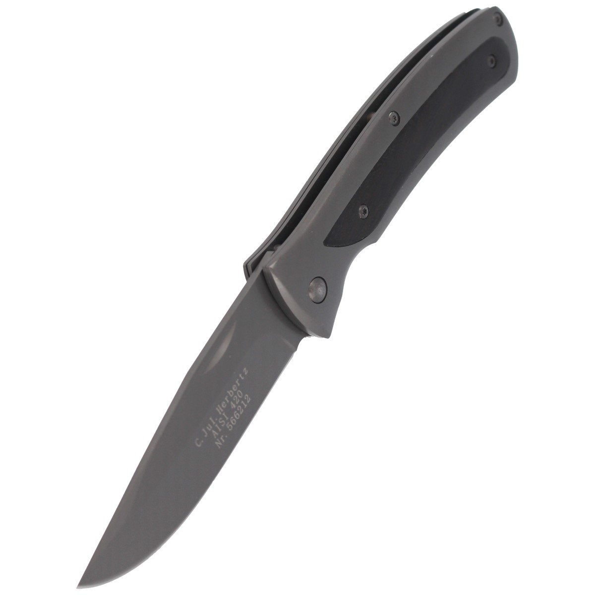 - 566212 Titanium Coated Steel/Sandal Wood, Titanium Coated, elegancki folder niemieckiej marki Herbertz Solingen. Głownia ze stali nierdzewnej 420 pokrytej tytanową powłoką, ergonomiczna, stalowa rękojeść z wkładkami z drewna sandałowego.