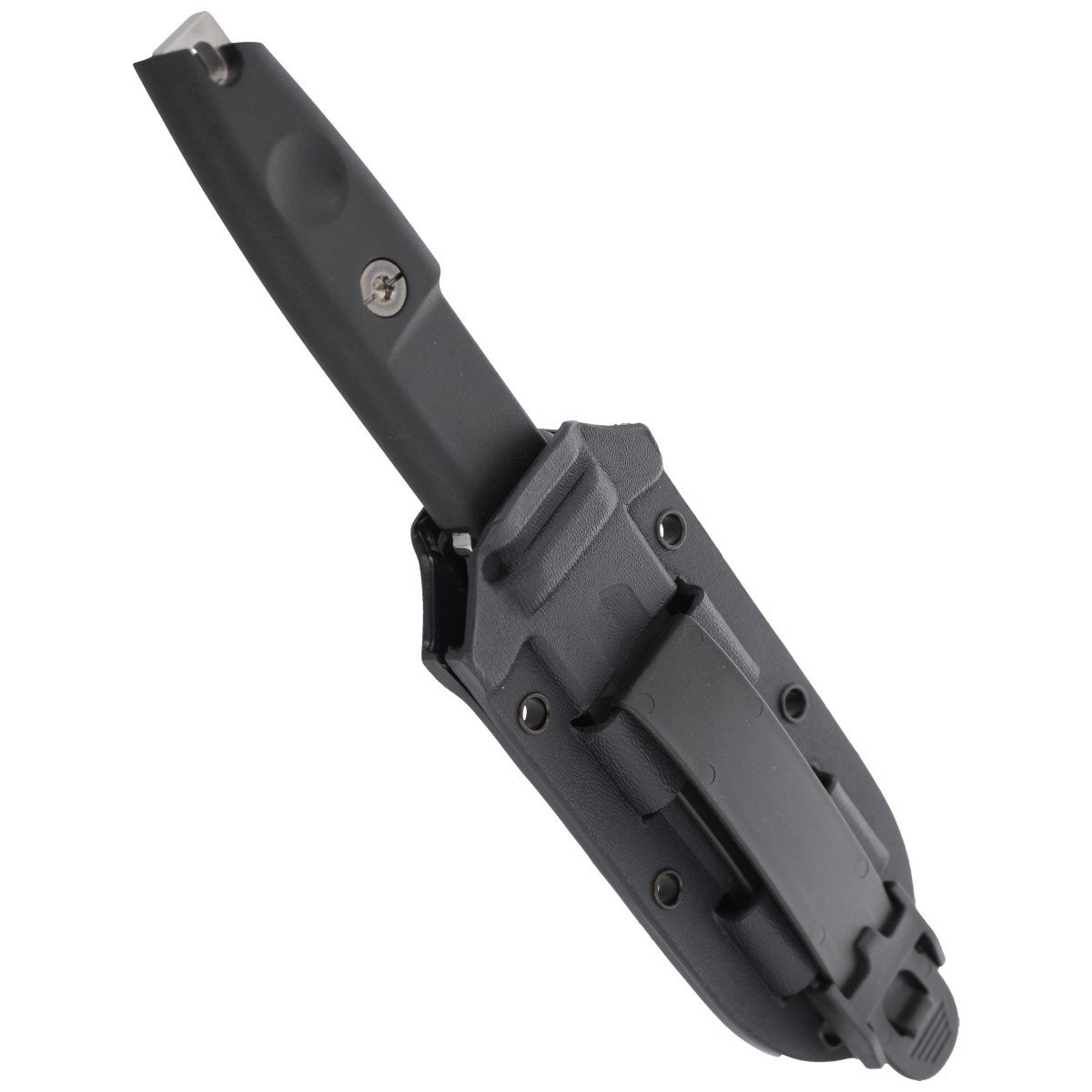 Pochwa - lekka, wykonana z tworzywa Kydex w kolorze czarnym, zabezpiecza nóż przed wypadnięciem oraz ułatwia jego dobycie. Po obu stronach kabury, system taśm z elastycznego polimeru umożliwiający szybkie mocowanie pochwy pod taśmy systemu M.O.L.L.E. (Modular Lightweight Load-carrying Equipment) lub na pas.