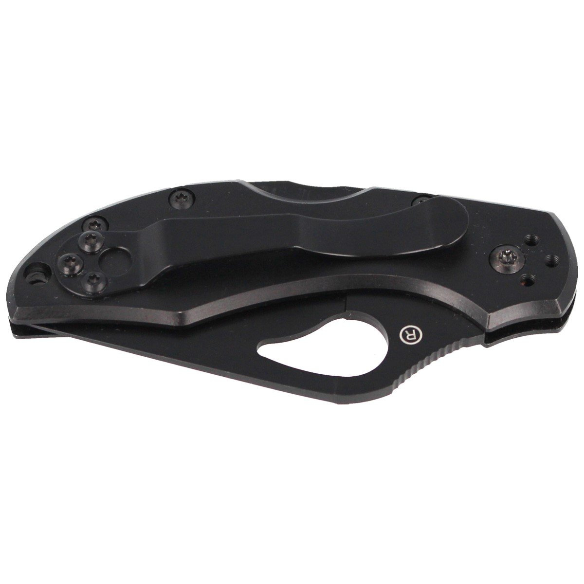 Rękojeść - pokryte powłoką black oxide coating solidne okładziny ze stali nierdzewnej (stainless steel) sfazowane dla poprawy uchwytu. Skręcana konstrukcja zapewnia precyzyjne dopasowanie wszystkich elementów w celu uzyskania maksymalnej efektywności. Podkładki z brązu fosforowego zapewniają płynne otwieranie / zamykanie scyzoryka. Metalowy klips klepsydrowy z możliwością mocowania w czterech płaszczyznach (góra/dół, prawo/lewo) four-way clip positions. Otwór (lanyard hole) umożliwia mocowanie linki zabezpieczającej.
