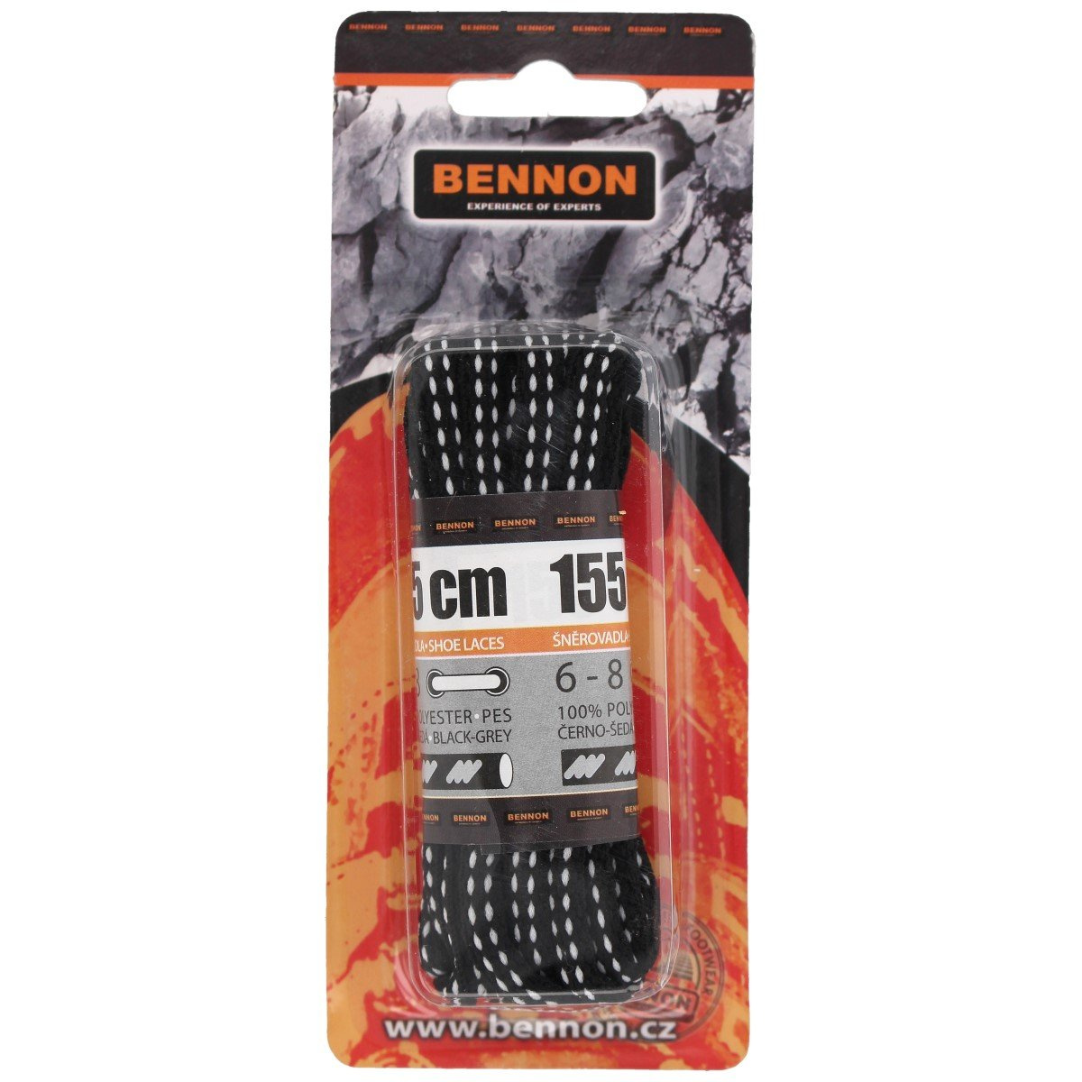 - Wysokiej jakości sznurowadła w kolorze czarno-szarym o długości 155 cm do obuwia trekkingowego/taktycznego.