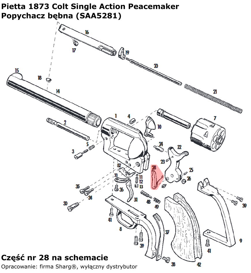 - SAA5281 (serwis) popychacz bębna włoskiej firmy Pietta. Do rewolwerów czarnoprochowych 1873 Single Action Steel oraz 1873 Single Action Stainless, najsłynniejszych rewolwerów Samuela Colta znanych również jako Peacemaker / Cattleman...