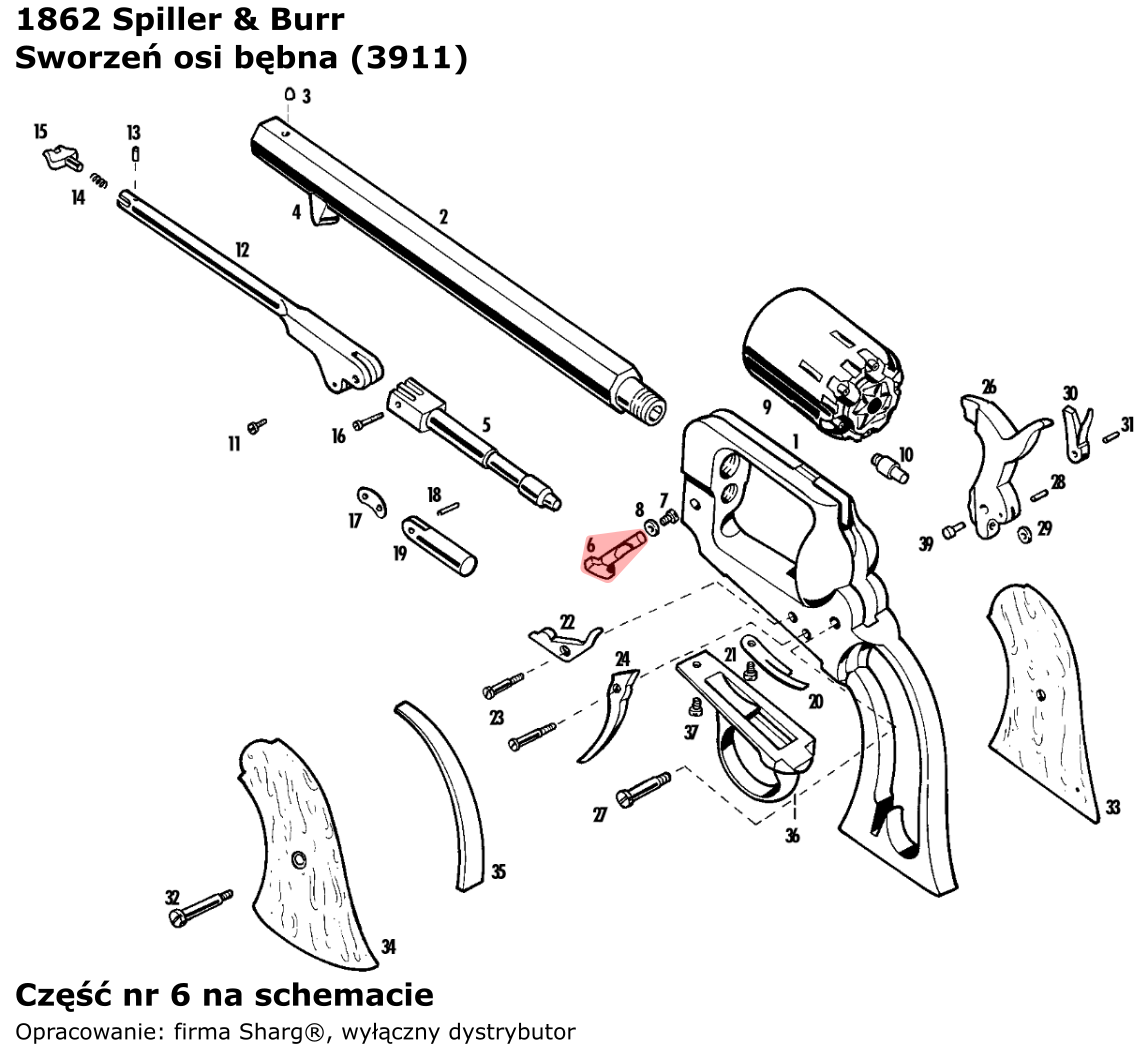3911 (serwis) sworzeń blokujący oś bębna firmy Pietta do rewolweru czarnoprochowego 1862 Spiller & Burr .36 cal.