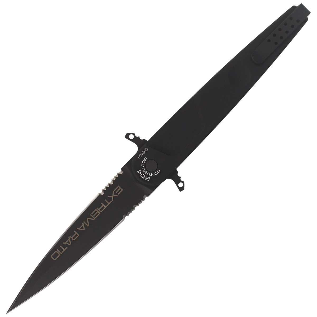 - BD4 Contractor Black, uniwersalny, lekki 137g folder Extrema Ratio z serii Basic. Doskonale wyważony, łatwy do przenoszenia, również w ukryciu, ostry jak igła, pokona każdą przeszkodę. Głownia o profilu Dagger z obusiecznym symetrycznym ostrzem i piłą...