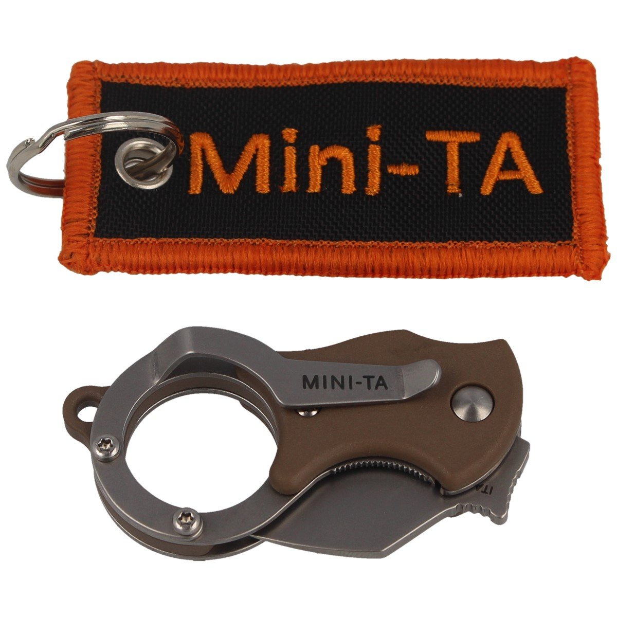 Mini-TA FRN Coyote, Bead Blasted przyciągająca uwagę designem mini wersja noża karambit. Dzięki doskonałej ergonomii dobrze leży w dłoni mimo kompaktowych rozmiarów. Metalowy key ring / o-ring / kółko, umożliwia przypięcie mini foldera do oporządzenia lub używanie jako breloka z pękiem kluczy. Mini-TA FRN Black włoskiej firmy FOX, nóż który zawsze będziesz chciał mieć przy sobie!