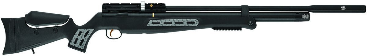 Lufa - precyzyjna gwintowana o długości 23" (585 mm) Hatsan QE (QuietEnergy) zakończona integralnym tłumikiem dźwięku redukującym o -50% odgłos wystrzału. Takie rozwiązanie zachowuje maksymalną energię wylotową śrucin, co może być utrudnione w wypadku stosowania opcjonalnego tłumika. Dokręcany tłumik może osłabiać energię strzału jak i zmienić parametry balistyczne pocisku a przyrządy optyczne mogą wymagać ponownej kalibracji. Zwężona u wylotu lufa (czok). Lufa jest jednym z najważniejszych elementów każdej broni / wiatrówki, jakość jej wykonania ma olbrzymi wpływ na celność każdej broni.