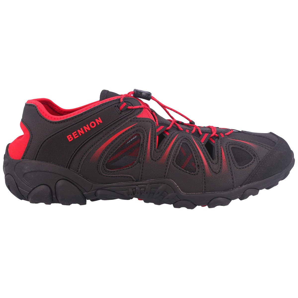 Sandały Bennon Yukon Red (507020030) (Z90025), uniwersalne, lekkie sandały przeznaczone do użytkowania zarówno w terenie, jak i do użytku codziennego. Sandały są wyposażone w boczną ochronę z TPU oraz system sznurowania Lacer XTR dla lepszego wsparcia i stabilizacji stopy. Cholewka jest wykonana z ultralekkiego materiału tekstylnego. Model w kolorze czarnym z czerwonymi detalami.