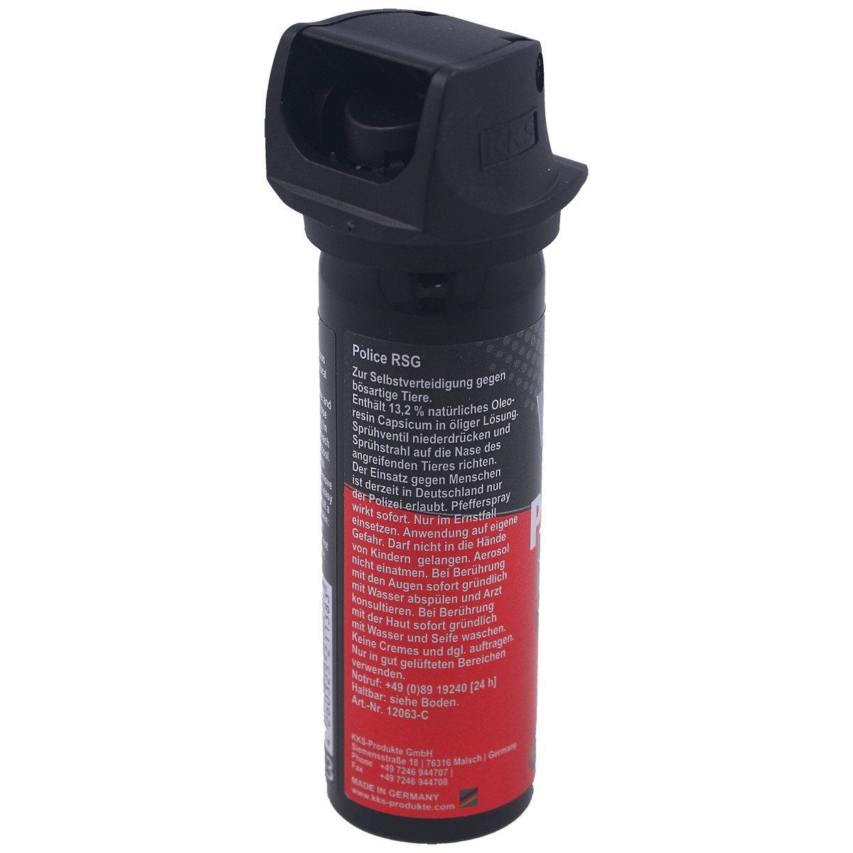 - VESK RGS Police niepalny gaz pieprzowy do profesjonalnych zastosowań o zawartości 13.32% OC, ostrości 2mln SHU, pojemności 63ml, dyszą cone. Owoc współpracy firmy KKS z funkcjonariuszami oddziałów prewencji niemieckiej policji. Głowica z klapką i okapkiem