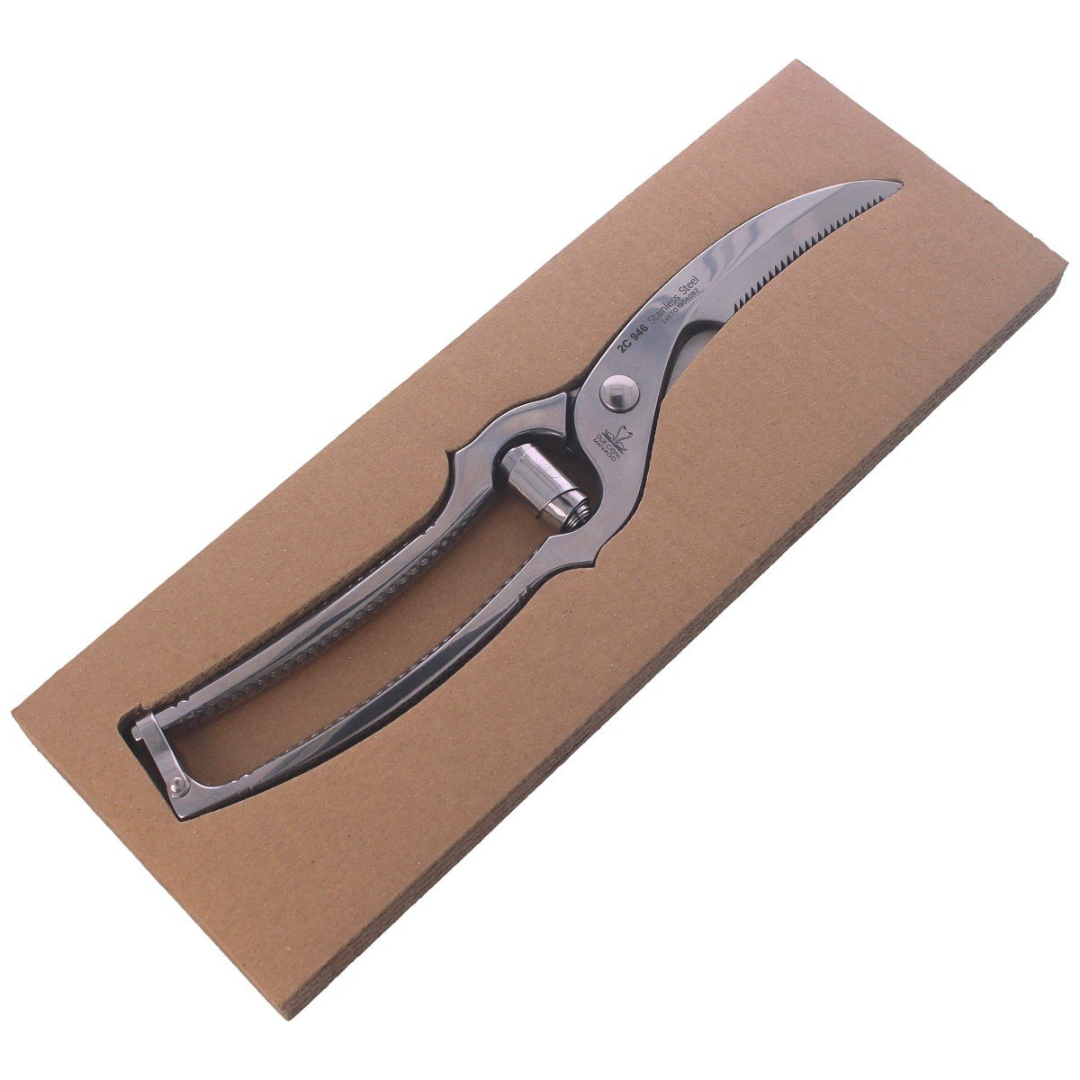 - Gazzella, stalowe nożyce do porcjowania drobiu: kurczaków, indyków, kaczek włoskiej marki Due Cigni. Wykonane ze stali nierdzewnej. Dzięki specjalnej dźwigni podczas krojenia nie trzeba wkładać wysiłku. Długość nożyc wraz z uchwytem wynosi 25 cm.