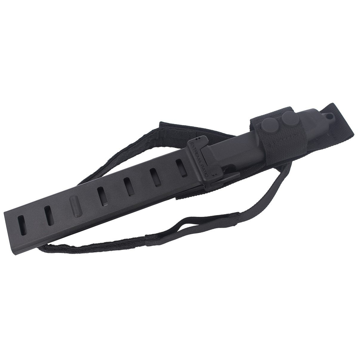 Pochwa - z formowanego wtryskowo nylonu w kolorze czarnym z możliwością mocowanie pod taśmy systemu M.O.L.L.E. (Modular Lightweight Load-carrying Equipment). Uniwersalna ażurowa kabura zabezpiecza nóż przed wypadnięciem (zatrzask), redukuje wagę oraz ułatwia osuszanie głowni a system tłumienia zapobiega grzechotaniu klingi podczas przemieszczania się. Dolna część kabury z zapinaną na rzep Velcro taśmą, umożliwiającą mocowanie noża do uda.