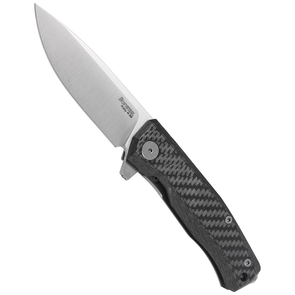 Myto Carbon Fiber, Satin zaawansowany technicznie folder Hi-Tech z wytrzymałą blokadą frame-lock. Wyjątkowy nóż E.D.C. włoskiej manufaktury LionSteel. Wyposażony w ostrze ze stali spiekanej M390, umieszczony na spodzie głowni „ReF”, system łożysk kulkowych Double Crown oraz tytanowy klips. W zestawie LionSteel Hand (#HY 68), klucz do regulacji śrub Torx T6, Torx 8 wraz z sześciokątnym kluczem Hex do śruby zbijaka szyb.