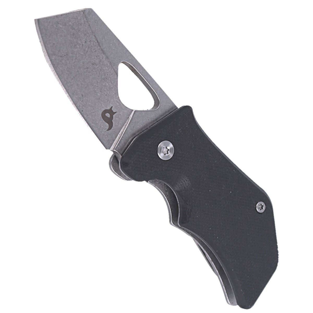 Rękojeść to z jednej strony czarne G10 przykręcone do stalowego linersa, z drugiej gruby kawąłek nierdzewnej stali. Okładziny zostały ze sobą skręcone przy pomocy tulei dystansowych dzięki czemu zmniejszono ciężar i zachowano otwartą konstrukcję. Klips typu deep carry, jednopozycyjny, umożliwia przenoszenie noża w pozycji tip-up.