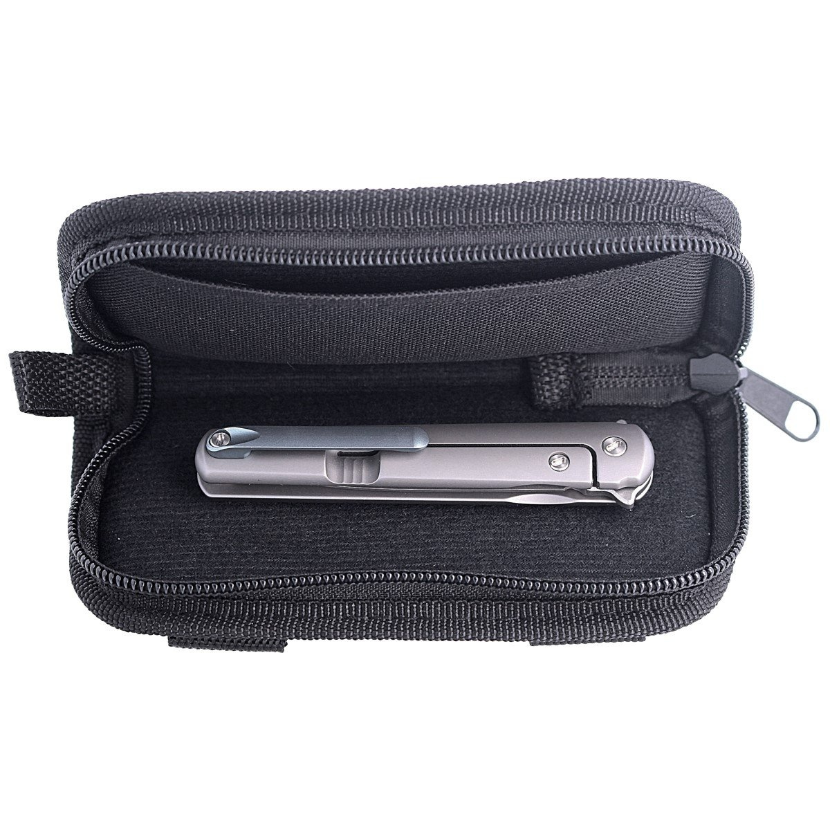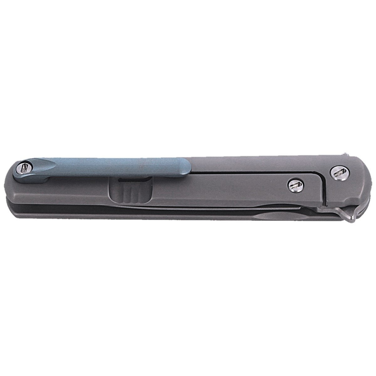 Rękojeść - okładziny z tytanu Ti6AI4V oferują wysoką sztywność konstrukcyjną i odporność na zużycie w codziennym użytkowaniu. Piaskowana powierzchnia zapewnia subtelną, matową estetykę oraz przyczepność bez potrzeby stosowania dodatkowych tekstur. Korpus łączony tuleją dystansową cechuje się prostotą i elegancją, a przy tym zachowuje pełną odporność mechaniczną. Klips typu deep carry, również tytanowy, umożliwia dyskretne przenoszenie foldera bez wystających elementów. W zestawie znajduje się etui z Cordury z zamkiem błyskawicznym i mocowaniem do paska – dopracowany dodatek dla wymagających użytkowników.
