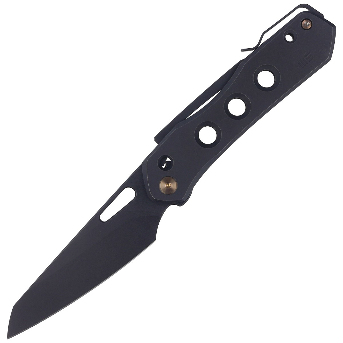 Rękojeść - to grube kawałki tytanu 6AL4V, połączone ze sobą tulejami dystansowymi. Prostota i solidność konstrukcji dają pewność wieloletniego użytkowania. Rękojeść została odciążona serią otworów w centrum okładzin. Klips dwupozycyjny (góra), wykonany z tytanu, umożliwia przenoszenie noża w pozycji tip-up. Zwraca uwagę jego nietypowe umieszczenie, na górze noża, a nie jak zwykle z boku. Rozwiązanie zaskakująco wygodne, pozwalające nosić nóż zarówno z lewej jak i prawej strony bez używania dodatkowych otworów i przekładania klipsa. W tylnej części znajduje się otwór do przewleczenia linki zabezpieczającej lub ozdobnej. Podobnie jak w innych modelach, oś pivota ozdobiona jest stylizowanym logiem producenta.