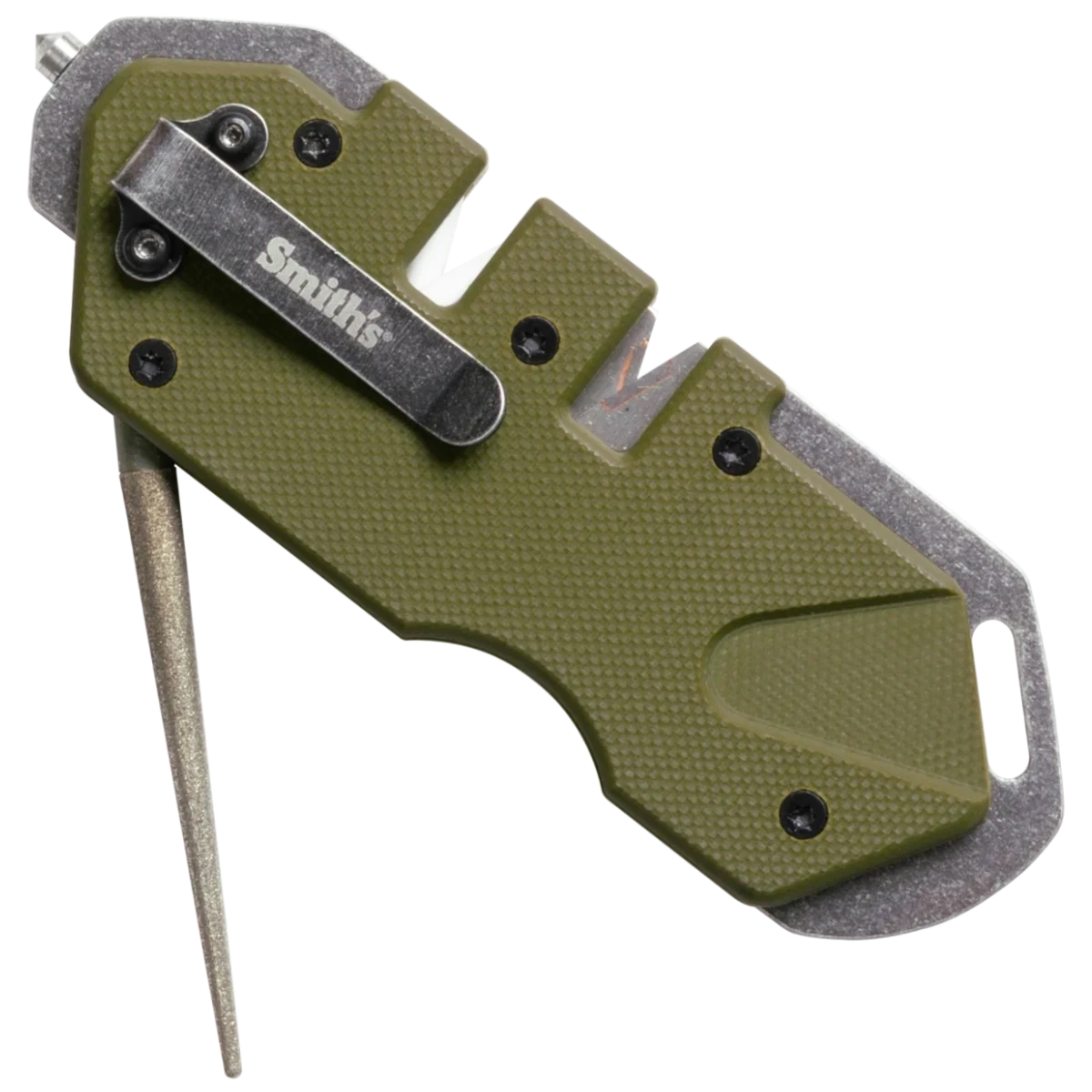 • PP1-Tactical OD Green, wielofunkcyjna kieszonkowa ostrzarka Pocket Pal Knife Sharpener amerykańskiej firmy Smith's. Pozwala łatwo i sprawnie naostrzyć niemal każdy nóż kuchenny, myśliwski, wędkarski, EDC, drobne narzędzia i haczyki wędkarskie.