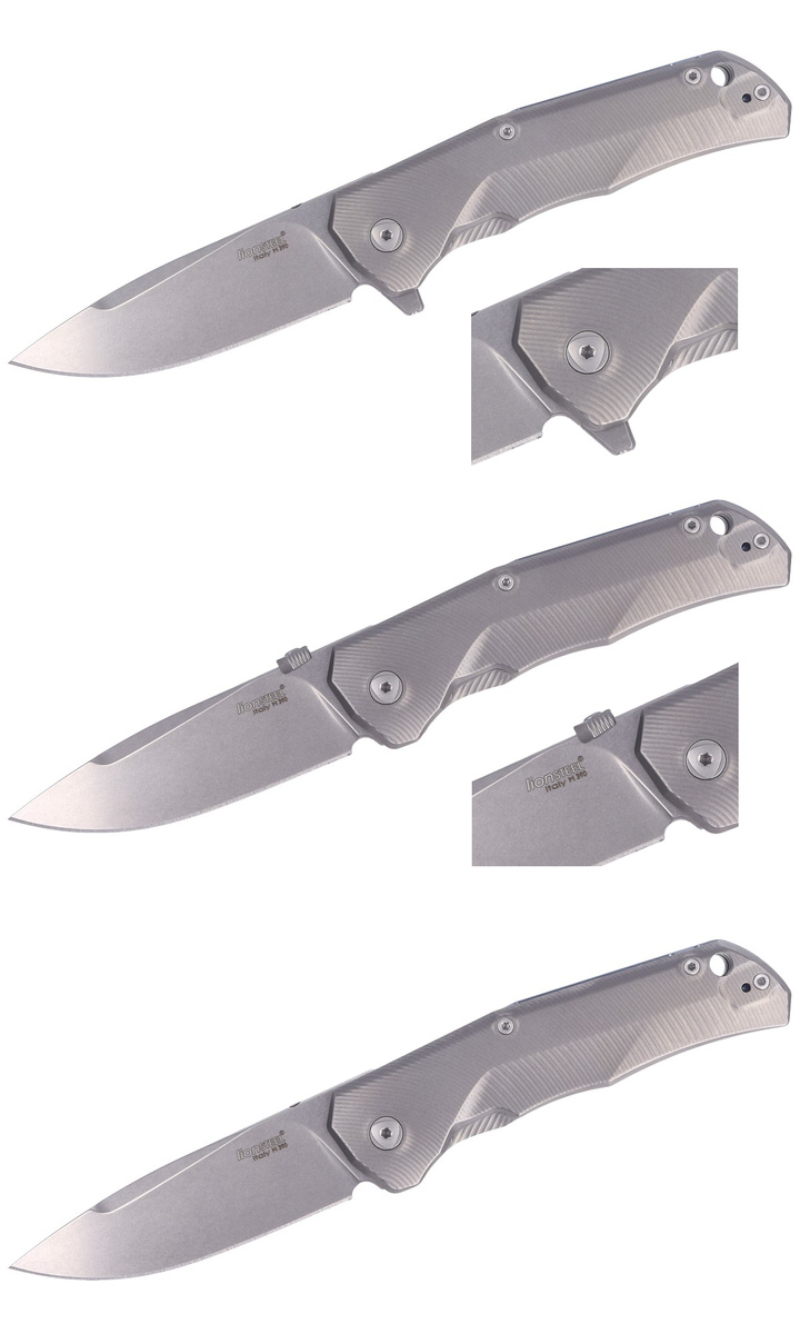 - TRE Grey Titanium, Stonewash M390 nóż wyposażony w Three Rapid Exchange opatentowany system z 3 różnymi sposobami wyposażenia foldera w opcje otwarcia głowni. Przydatny w krajach z zakazem używania w miejscach publicznych noży otwieranych jedną ręką.