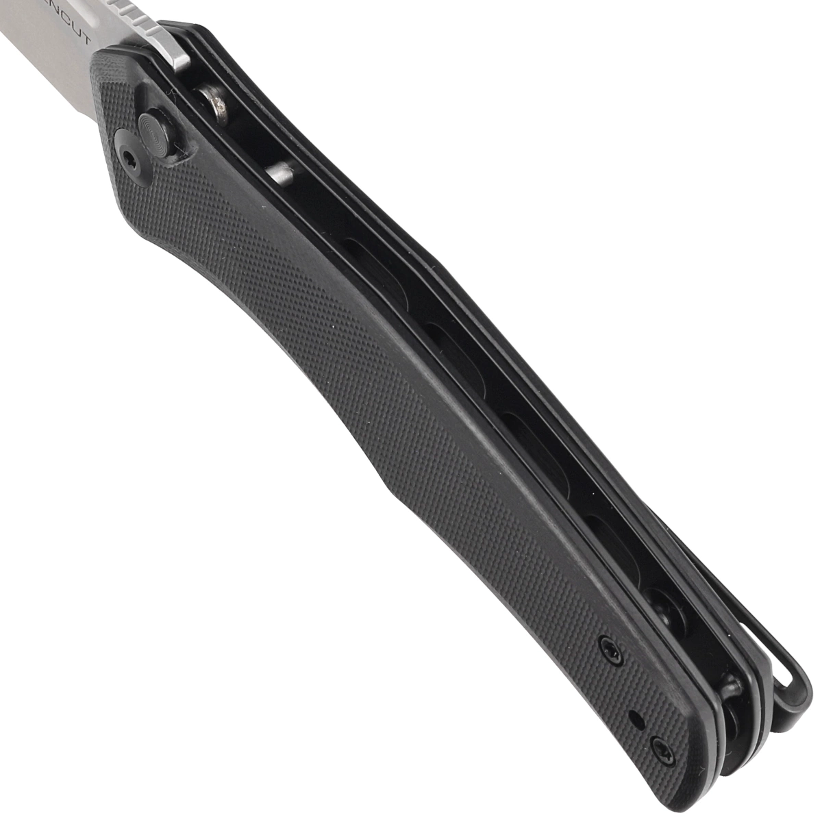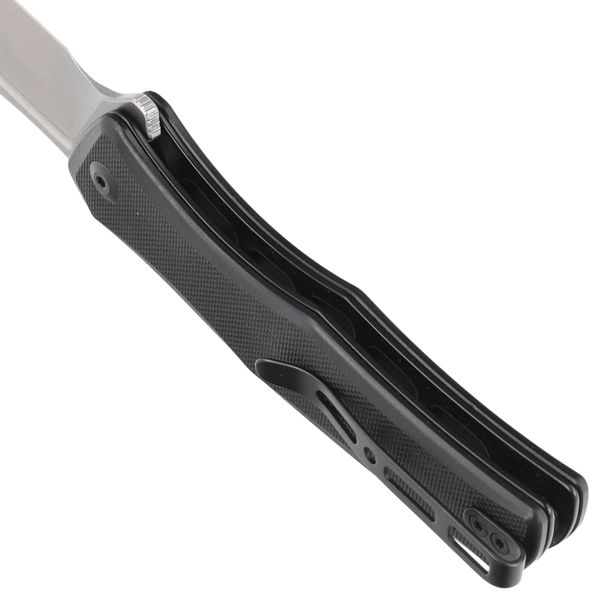 Rękojeść - w czarnym kolorze. Wykonana z G10, kompozytowego materiału z włókna szklanego prasowanego pod ciśnieniem z syntetyczną żywicą. Fazowane krawędzie okładek eliminują ostre krawędzie dla wygody, uchwytu. Otwarta konstrukcja tzw. open-backed mocowana stalowymi tulejami dystansowymi redukuję wagę oraz ułatwia czyszczenie. Dwupozycyjny, prawo/lewostronny klips deep carry pozwala przenosić dyskretnie nóż w kieszeni w pozycji tip-up (czubkiem ostrza ku górze).