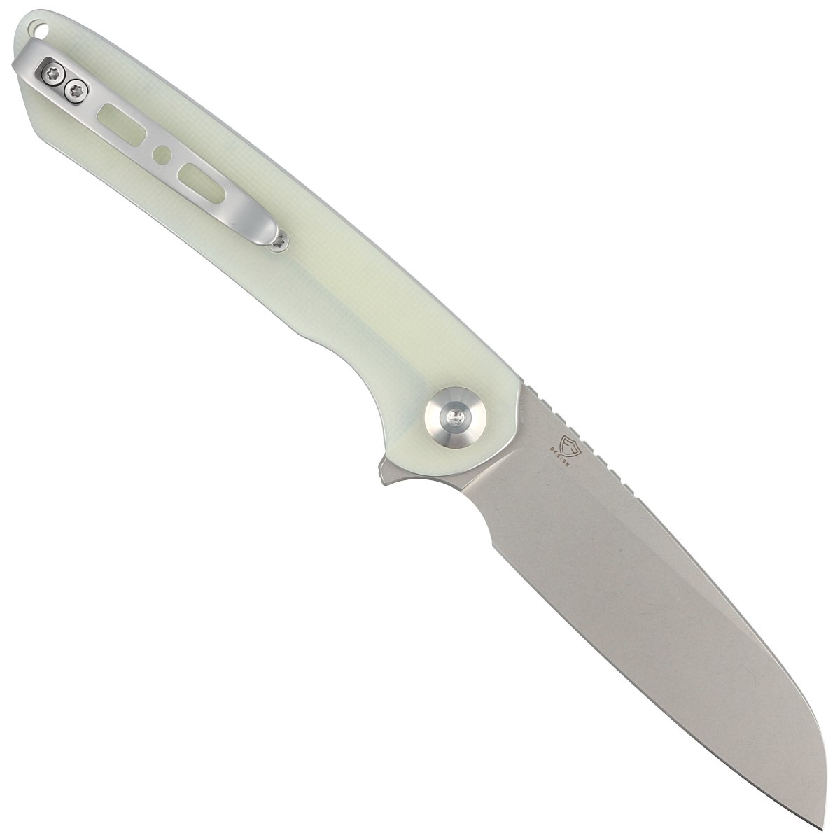 Głownia - typu Sheepsfoot o lekko zakrzywionej krawędzi tnącej, wykończona maskująca niewielkie rysy metodą Stonewashed. Niewielka grubość klingi w połączeniu z wysokim, płaskim szlifem daje doskonałą geometrię krawędzi tnącej oraz ekstremalną wydajność cięcia. Ceramiczne łożyska kulkowe wspomagają płynną pracę mechanizmu otwierającego klingę, którą można otworzyć za pomocą szybkiej płetwy flippera (index-finger flipper). Po otwarciu płetwa tworzy mini-gardę zapobiegającą ześlizgnięciu się dłoni na ostrze. Na grzbiecie klingi upper jimping, karbowane oparcie pod kciuk. Całość blokowana jest solidną blokadą liner lock.