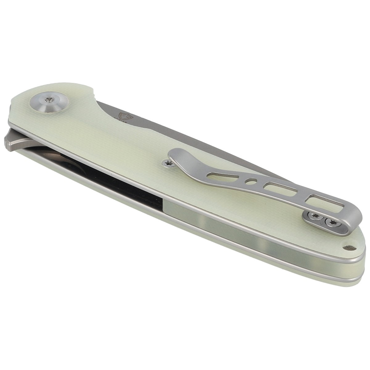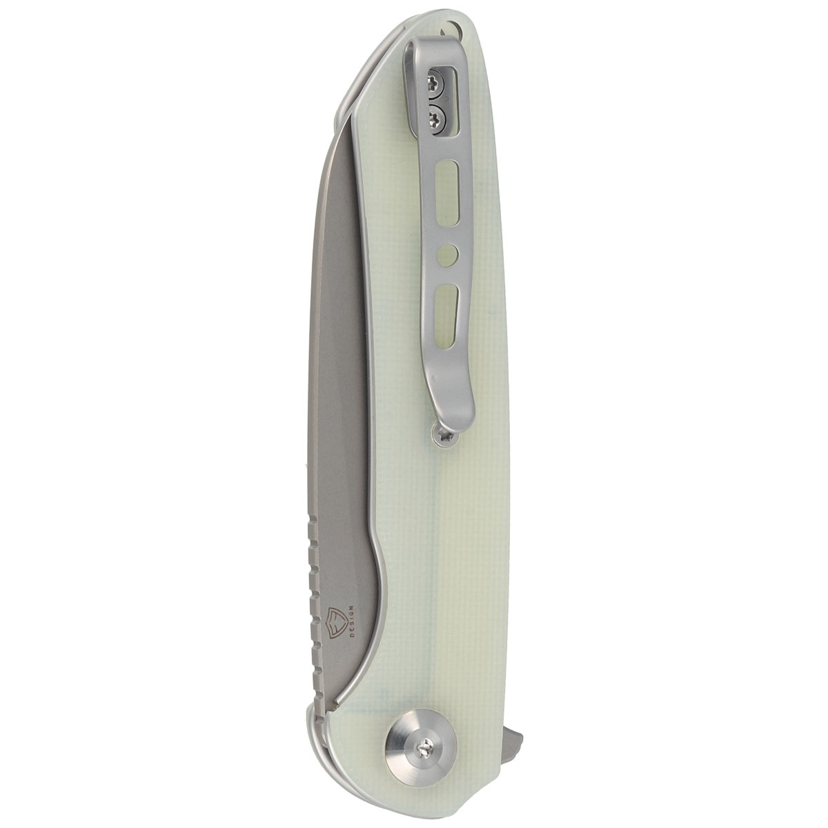 Rękojeść - w naturalnym kolorze. Wykonana z G10, kompozytowego materiału z włókna szklanego prasowanego pod ciśnieniem z syntetyczną żywicą. Fazowane krawędzie okładek eliminują ostre krawędzie dla wygody, uchwytu. Backspacer wykonany z tego samego materiału co okładki. Wykonane z przodu podcięcie na palec (fore finger groove) poprawia pewność uchwytu. Dwupozycyjny, prawo/lewostronny klips deep carry pozwala przenosić dyskretnie nóż w kieszeni w pozycji tip-up (czubkiem ostrza ku górze).