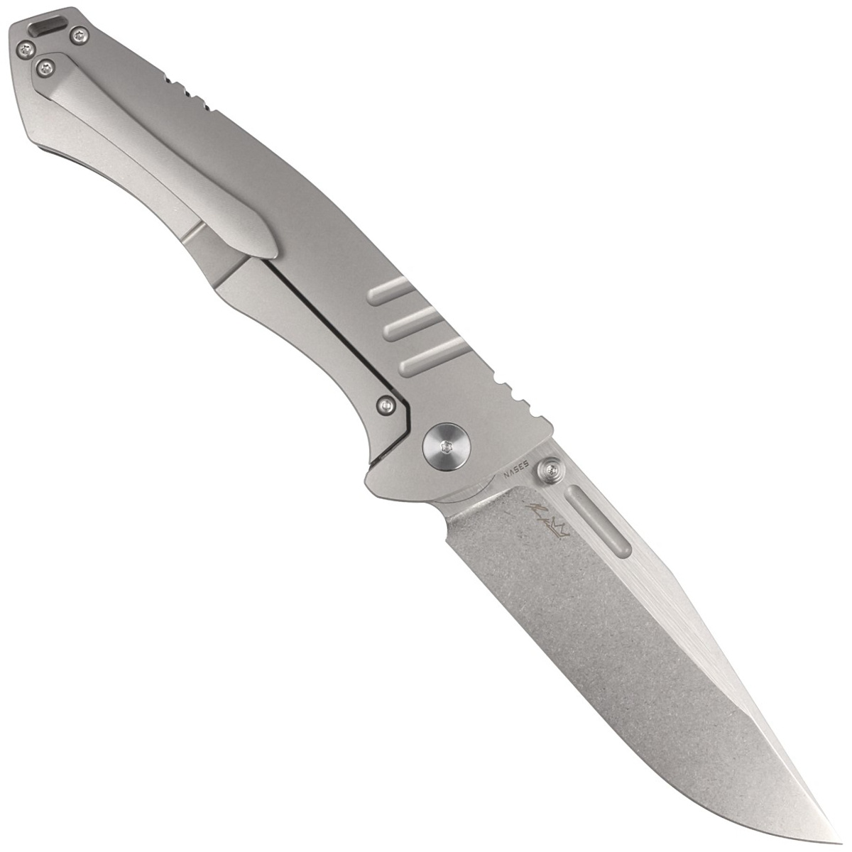 Głownia - szeroka, typu Clip Point z efektownym wykończeniem Two Tone, szlif satynowany, pozostała część wykończona metodą Stonewashed. Wydatny brzusiec wydłuża długość krawędzi tnącej w stosunku do długości klingi zbiegając się w kierunku ostrego jak igła czubka noża. Grubość klingi zapewnia wysoką wytrzymałość podczas gdy wysoki, płaski szlif daje doskonałą geometrię krawędzi tnącej oraz ekstremalną wydajność cięcia. Ceramiczne łożyska kulkowe wspomagają otwarcie ostrza za pomocą szybkiej płetwy flippera (index-finger flipper) po otwarciu pełniącej funkcję jelca. Nóź możemy również otworzyć przy użyciu obustronnego kołka w klindze (double thumb stud). Całość blokowana jest sprawdzoną i popularną blokadą frame lock ze stalową wkładką zabezpieczającą przed wycieraniem czoła blokady.
