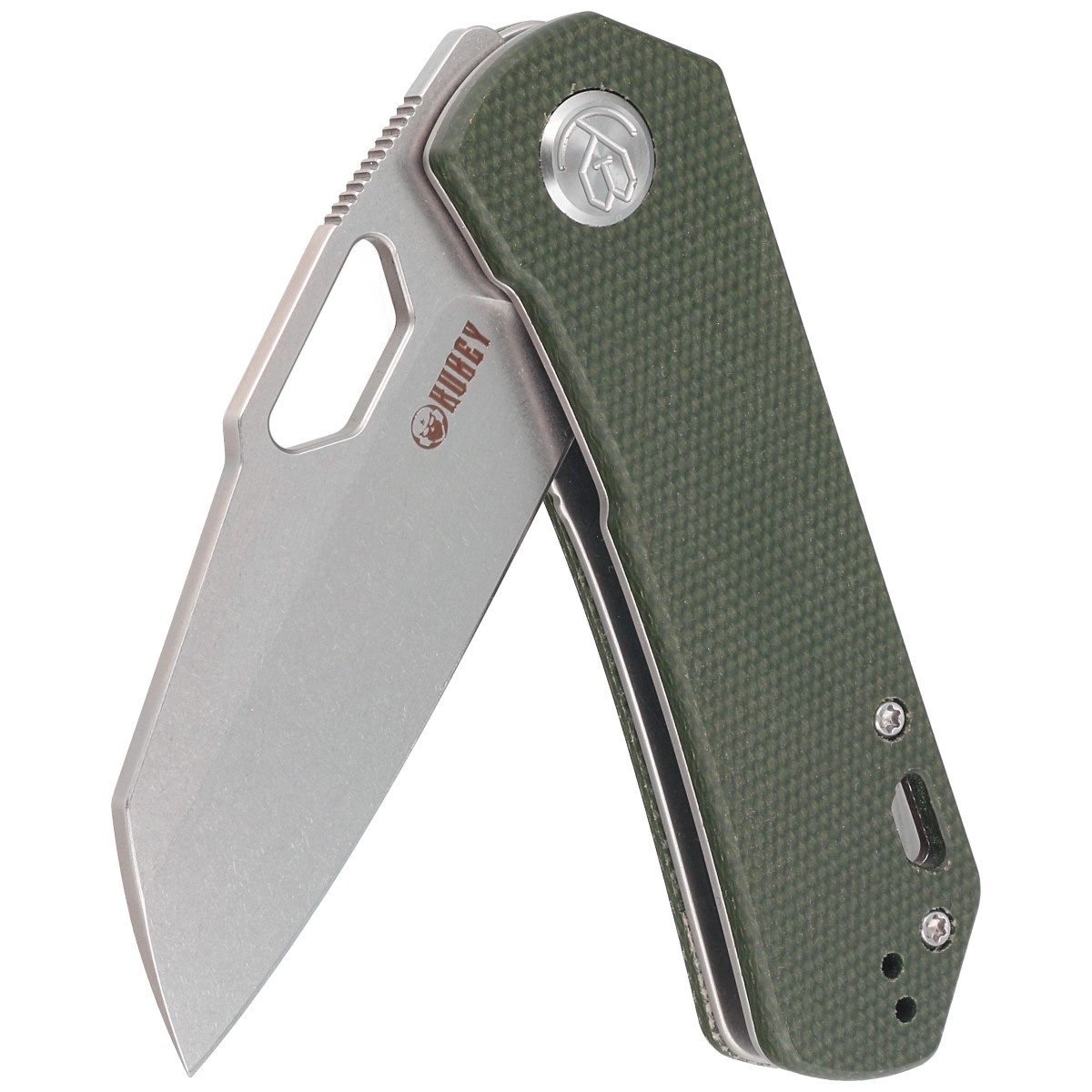 • Duroc Green Micarta, Black Stonewashed podręczny nóż EDC o intrygującym projekcie. Użytkowa głownia sheepfoot ze stali nierdzewnej AUS-10, otwór w klindze i płetwa flippera do otwierania oraz rękojeść z Micarty. Znakomity stosunek jakości do ceny!
