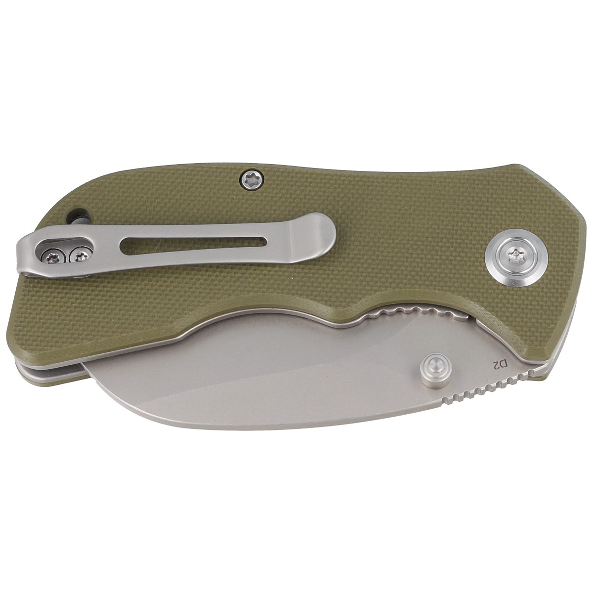Karaji Green G10, Bead Blasted, kompaktowy folder EDC, o niewielkich rozmiarach, zbudowany jednak jak czołg! Stal narzędziowa ostrza D2, odporne tworzywo G10 na rękojeści, narzędzie, które zawsze możesz mieć przy sobie i które nie zawiedzie! Bestseller!