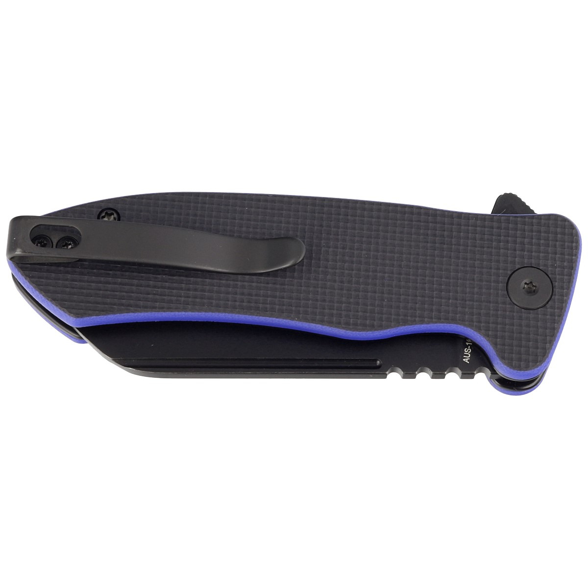 Creon Black/Blue G10, Blackwashed, kompaktowy folder EDC, łączący solidność z praktycznością. Ostrze z japońskiej stali nierdzewnej AUS-10, znanej z doskonałej odporności na korozję i łatwości ostrzenia. Rękojeść z wytrzymałego kompozytu G10 zapewnia pewny chwyt, nawet w trudnych warunkach. Intuicyjny mechanizm blokady button lock umożliwia bezpieczne i łatwe operowanie nożem jedną ręką. Dzięki mocnej konstrukcji i niewielkiej wadze, Creon idealnie nadaje się do codziennego noszenia, oferując niezawodność i funkcjonalność w każdej sytuacji.