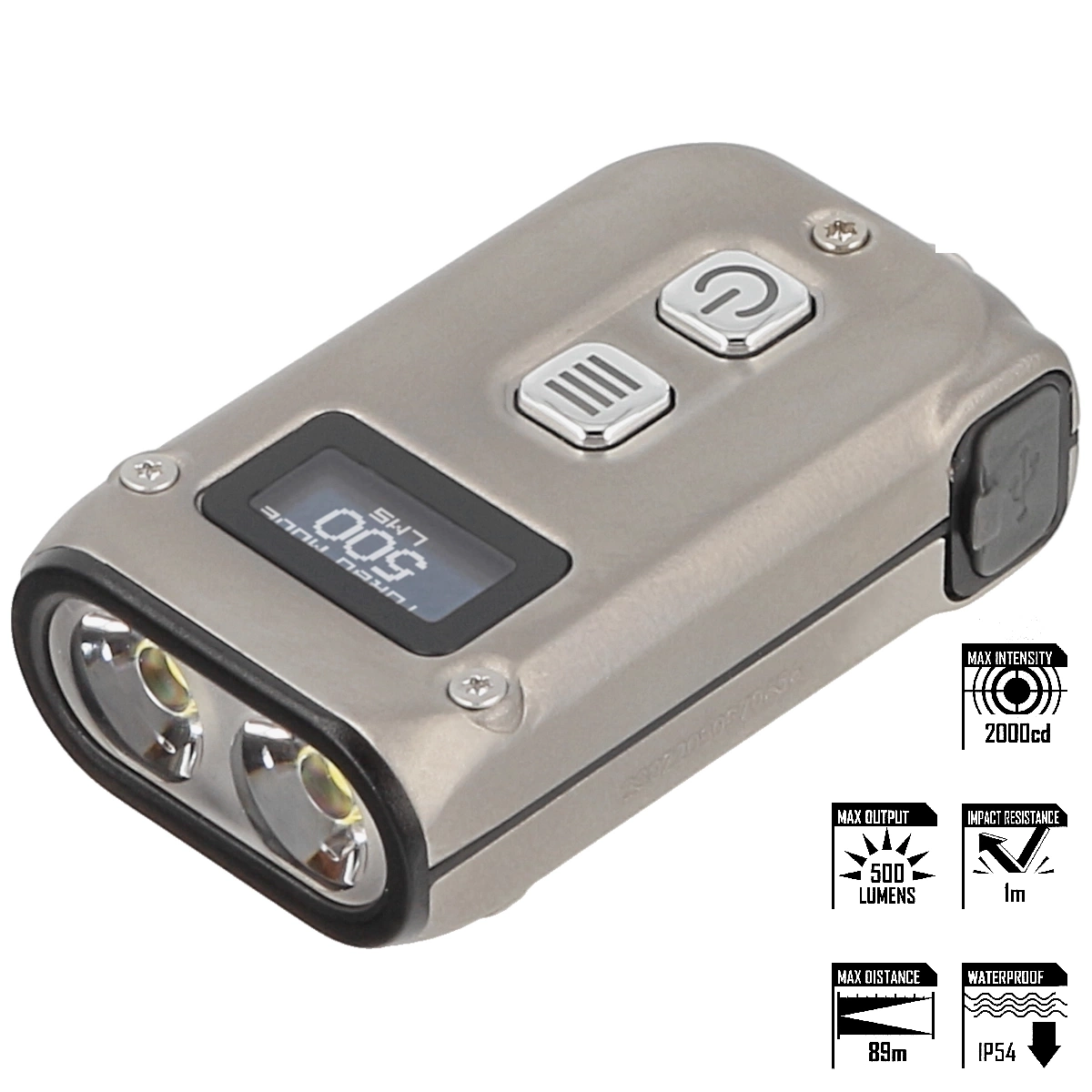 238,00 złNitecore TINI2 Ti ultralekka 21,5 g, nieduża wodoodporna latarka, brelok do kluczy zapewnia wysokiej jakości źródło światła. Kompaktowa budowa, pięć trybów pracy Turbo 500 lm, High 200 lm, Mid 65 lm, Low 15 lm i Ultralow 1 lm, idealna latarka E.D.C.