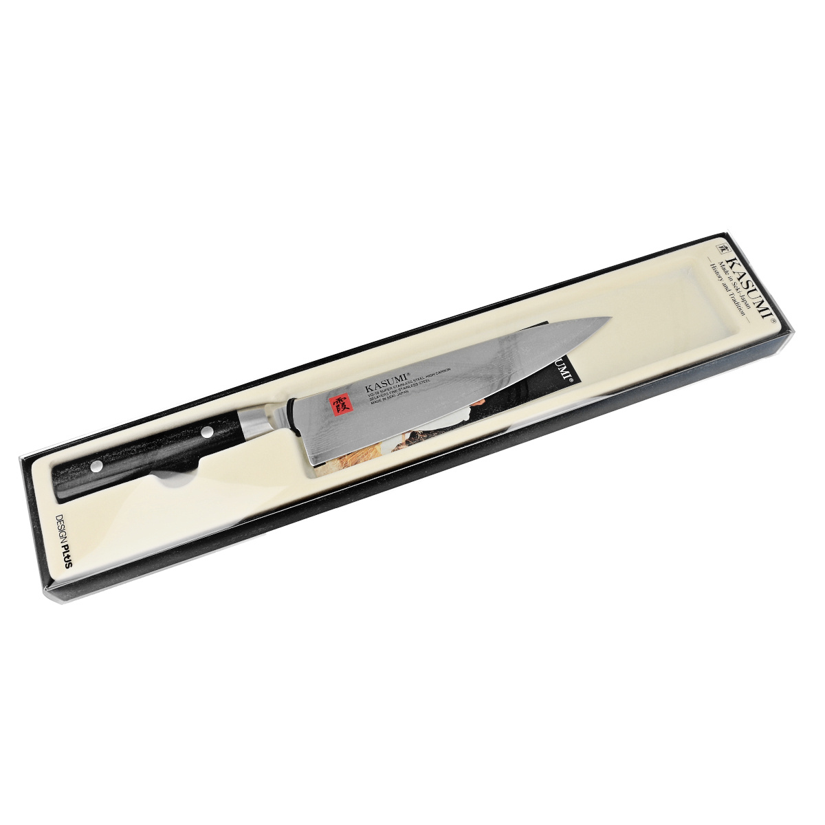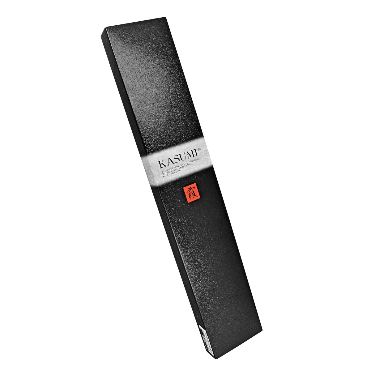 Kasumi Damascus Gyuto z rdzeniem ze stali nierdzewnej VG-10 wykończony 32 warstwowym damastem. Wykonany tymi samymi metodami co miecze samurajskie, z wygodną, europejską rękojeścią z drewna pakka. Uwaga!!! Bardzo ostre!!! W 2002 roku noże "KASUMI" zdobyły nagrodę Design Plus Award na targach Ambiente Messe w Niemczech.