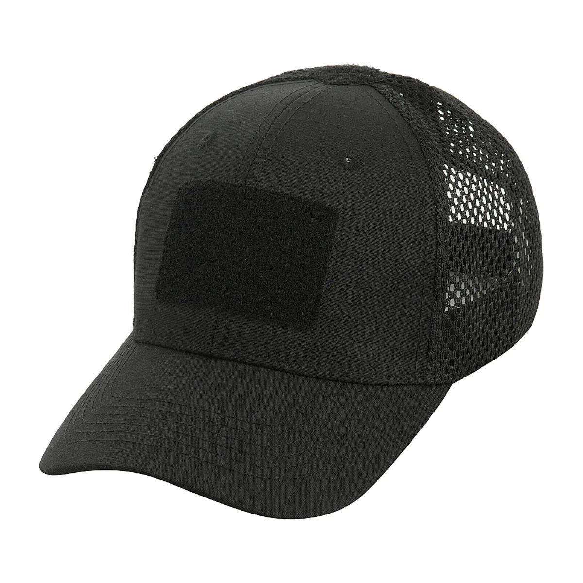 Mesh Flex Rip-Stop z Velcro, Black odporna na zużycie, komfortowa czapka bejsbolówka ze sztywnym daszkiem chroniącym przed wiatrem, palącym słońcem i promieniowaniem UV. Stylowy dodatek do miejskiego stroju, sprawdza się także podczas survivalowych oraz outdoorowych wypadów poza miasto.