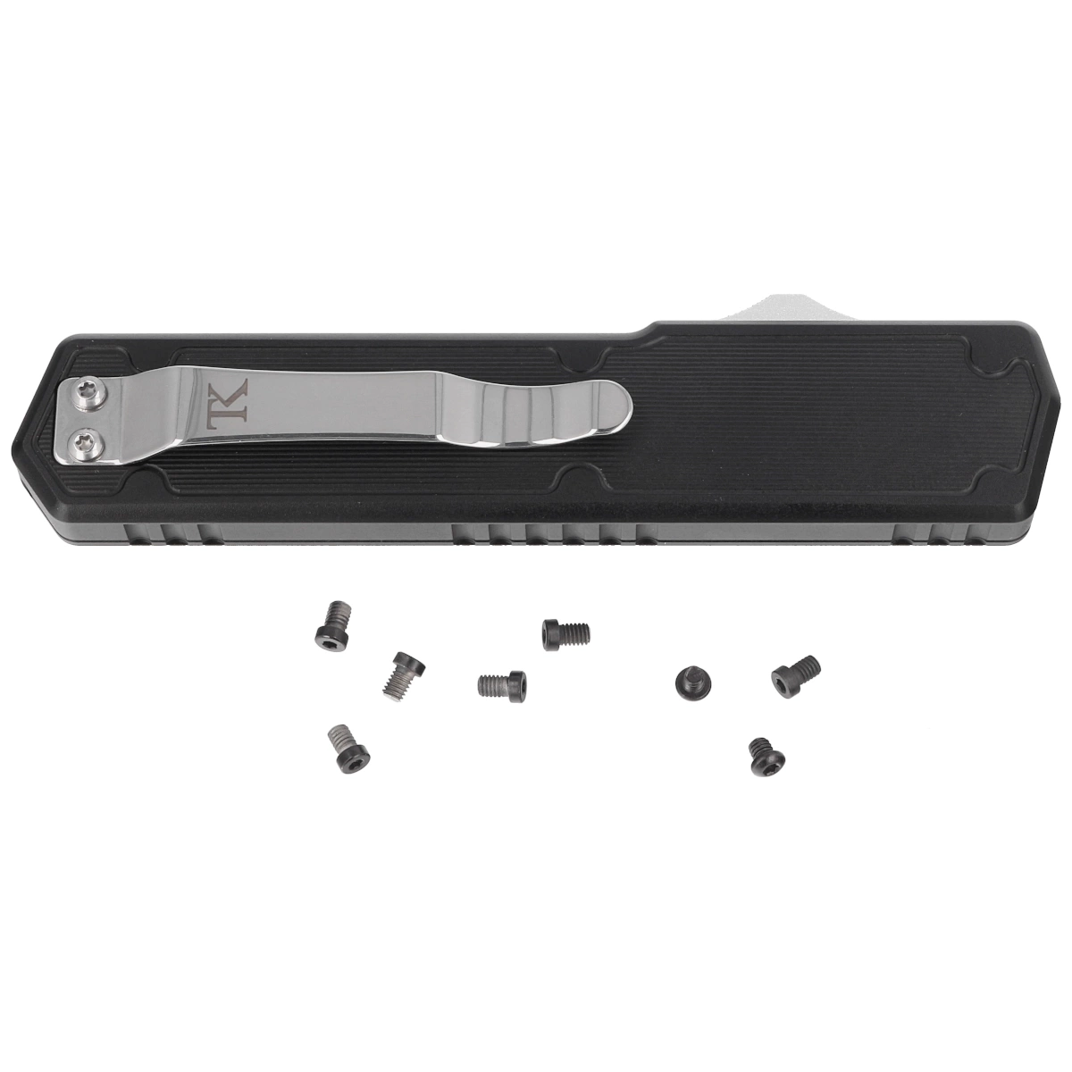 Rękojeść - wykonana z anodyzowanego na czarno aluminium 6061-T6 z idealnie dopasowanymi wkładkami z G10. Dzięki fakturze powierzchni nóż nie ślizga się w dłoni podczas używania. Smukła budowa umożliwia schowanie noża w każdej kieszeni. Klips jednopozycyjny (prawa), umożliwia noszenie noża w pozycji tip-down.