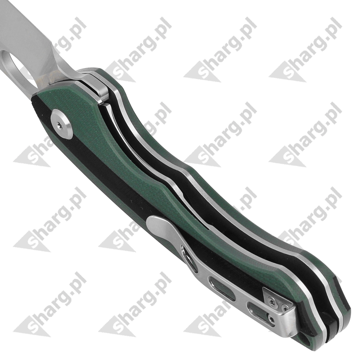 • Skirmish Green / Black G10, Satin, kompaktowy, mocny nóż składany EDC o znakomitym stosunku jakości do ceny. Wygodna, ergonomiczna rękojeść z praktycznie niezniszczalnego tworzywa G10, klinga ze stali narzędziowej D2. Bestseller!