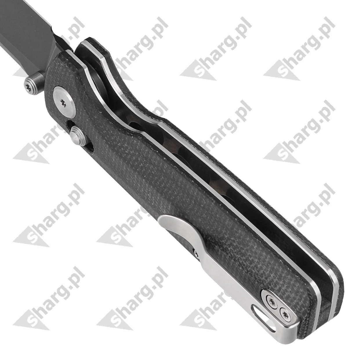 Rękojeść - okładziny z Micarty, praktycznie niezniszczalnego tworzywa niewrażliwego na warunki atmosferyczne, odpornego na chemikalia i uszkodzenia mechaniczne Fazowane krawędzie okładek eliminują ostre ranty a charakterystyczne teksturowanie powierzchni poprawia pewność uchwytu. Masywny backspacer do którego przymocowano okładziny gwarantuje sztywność i wytrzymałość całej konstrukcji. Dwupozycyjny (prawa/lewa) klips umożliwia przenoszenie noża w pozycji tip-up, czubkiem ostrza ku górze.