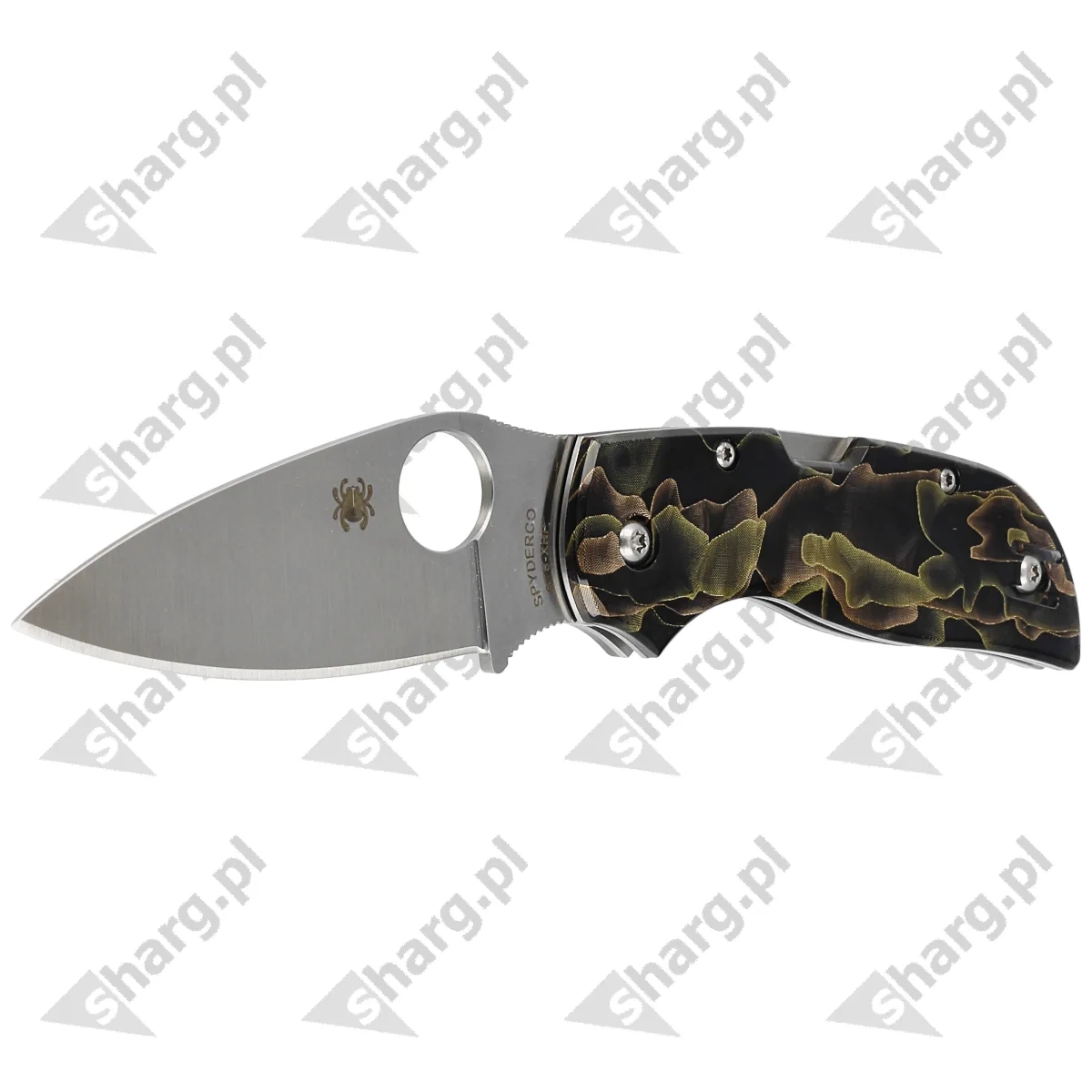 Głownia - grubości 1.9 mm o profilu Leaf Shaped (kształt liścia). Ostrze gładkie Plain, wyprowadzono szlifem pełnym płaskim (Full Flat Grind). Płaski szlif gwarantuje doskonałą geometrię krawędzi tnącej z ostrym czubkiem, redukuje wagę noża oraz prezentuje piękne satynowe wykończenie. Powiększone 14 mm okrągłe wycięcie SpyderHole (patent Spyderco) ułatwia otwarcie klingi zimnymi lub mokrymi dłońmi. Karbowane podparcia: pod kciuk, rampa (spine jimping) oraz (finger choil jimping), podcięcie pod palec wskazujący między rękojeścią a krawędzią tnącą ułatwiają panowanie nad nożem. Umieszczona po środku, mocna blokada głowni Back-Lock.